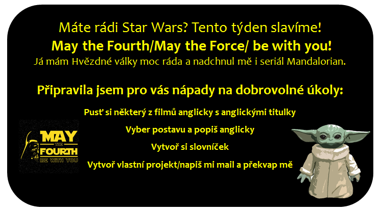 This week, you have the opportunity to work on your OBOROVÁ PRÁCE (PROJECT PAPER) and to send your annotation for checking (if it´s in English of course) :)